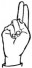 На ћирилици написано РАДНА РАФФАНЕЛЛИ састоји се из 15 слова [?]. Исписано ћириличном једноручном азбуком за глувонеме: